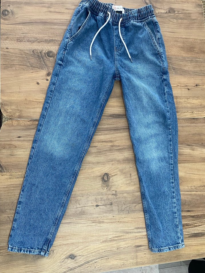 Günlük kullanıma uygun, elastik bel ve bağcıklı, bol kesim mavi kot pantolon. Rahat ve şık bir görünüm sunar.