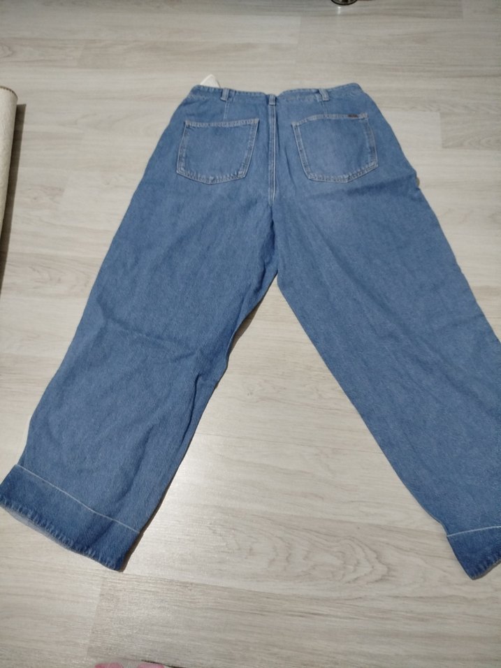 Kadın Mavi Bol Kesim Midi Kot Pantolon