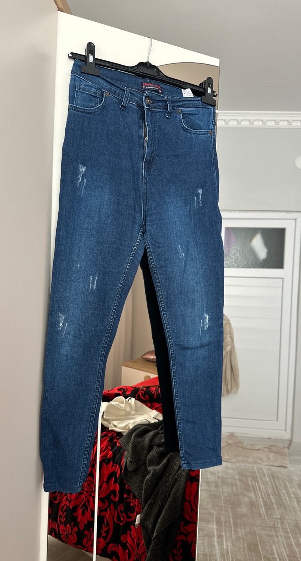 Kadın Mavi Bol Kesim Midi Kot Pantolon