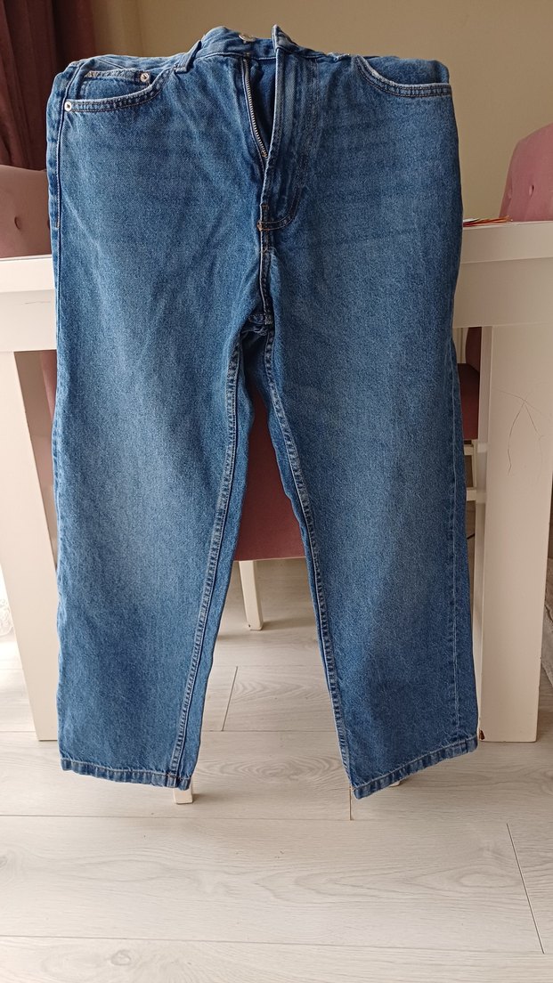 Kadınlar için parlak mavi renkte, bol kesim ve midi boy kot pantolon. Tokalı detayı ve gündelik rahat normcore stiline uygundur.