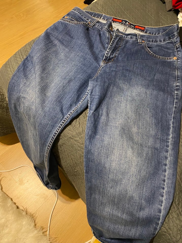 Kadınlar için mavi renkli, bol kesim ve normal midi boy kot pantolon. Tokalı detaya sahiptir, günlük kullanıma uygundur.