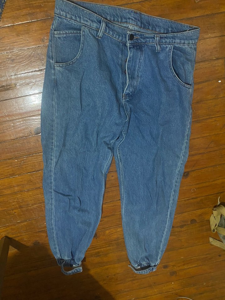 Parlak mavi renkte, bol kesim midi boy kot pantolon. Rahat sokak stili ve günlük kullanım için zahmetsiz şıklık sunar.