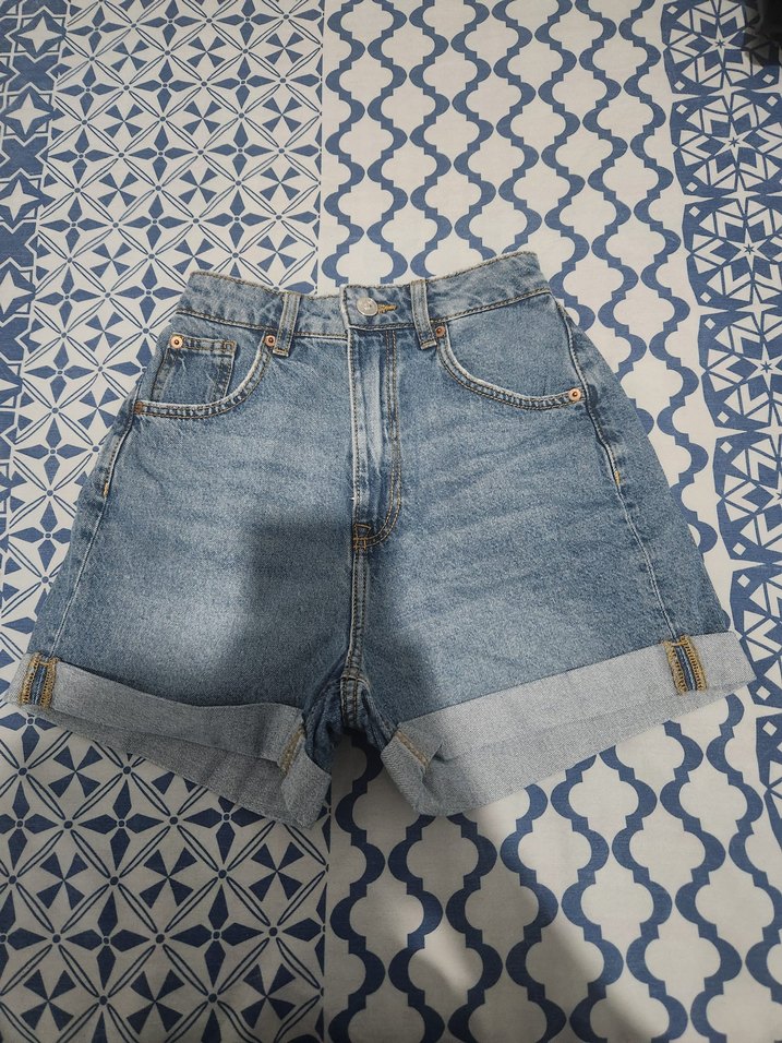 Mavi renkli, bol kesim, mini uzunlukta, denim şort. Rahat ve günlük sokak tarzına uygun. Ürün 34 beden fakat 45 kg ya göre yaptırıldı.