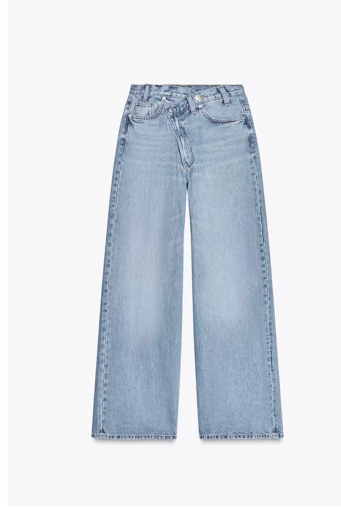 Mavi denim kumaştan, kemerli ve normal boy midi paça pantolon. Günlük kullanıma uygun, trend casual tarz için idealdir.