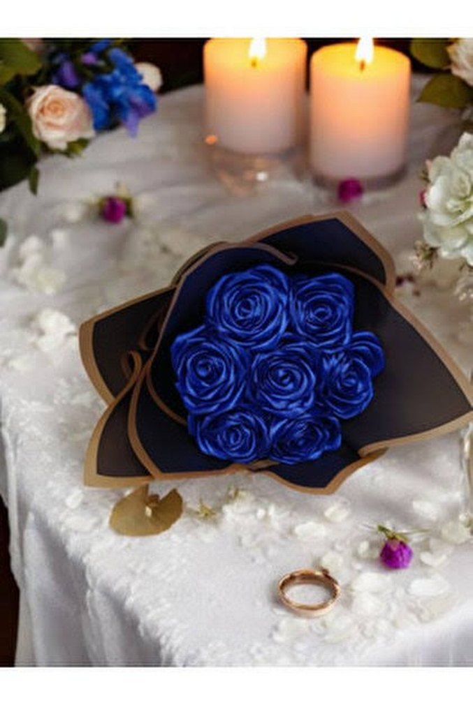 Kadınlar için koyu mavi çiçekli fırfırlı broş, bohem Paris tarzında, düğünler için uygun.