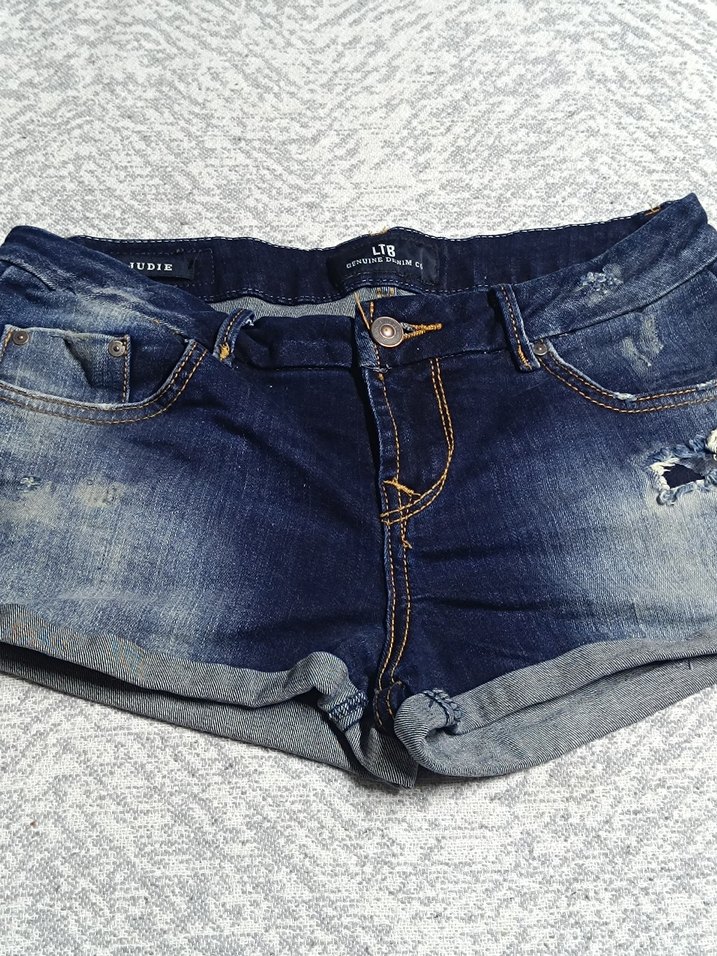 Mavi renkli, bağlama desenli ve dantel detaylı, bol kesim kadın mini denim şort. Günlük rahat kullanıma uygun, sokak stiline uygun kısa paça.