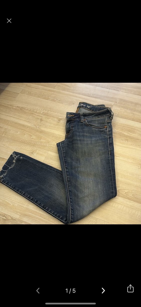 Kadınlar için parlak mavi renkte, dar kesim, tokalı kot pantolon. Günlük ve sokak stili için uygundur.