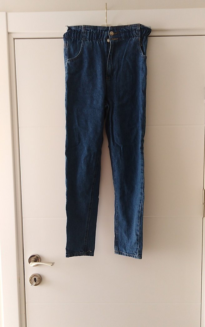 Bel kemerli, dar kesim mavi denim pantolon. Normal midi boyda, günlük ve sokak stiline uygun rahat tasarım.Bel kısmı lastikli, düğmeli, fermuarlı, bir kez giyildi.Çok fazla kusuru yoktur giyilebilir durumda detayları fotoğrafta paylaşılmıştır iadeye sıcak bakmıyorum.
