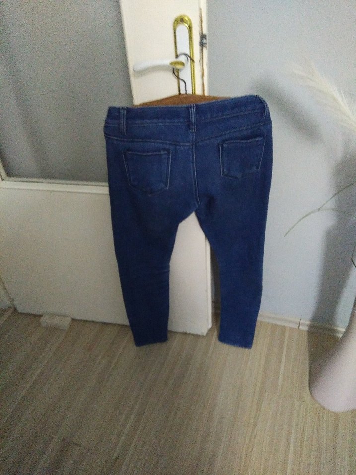 Kadınlar için mavi renkli, dar kesim midi boy kot pantolon. Tokalı detayları ve desen içermeyen normcore tarzıyla günlük kullanıma uygundur.