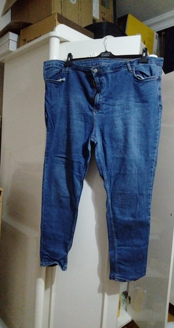 Kadınlar için dar paça, yüksek bel, mavi kot pantolon. Günlük kullanıma uygun, parlak görünümlü rahat sokak stili.