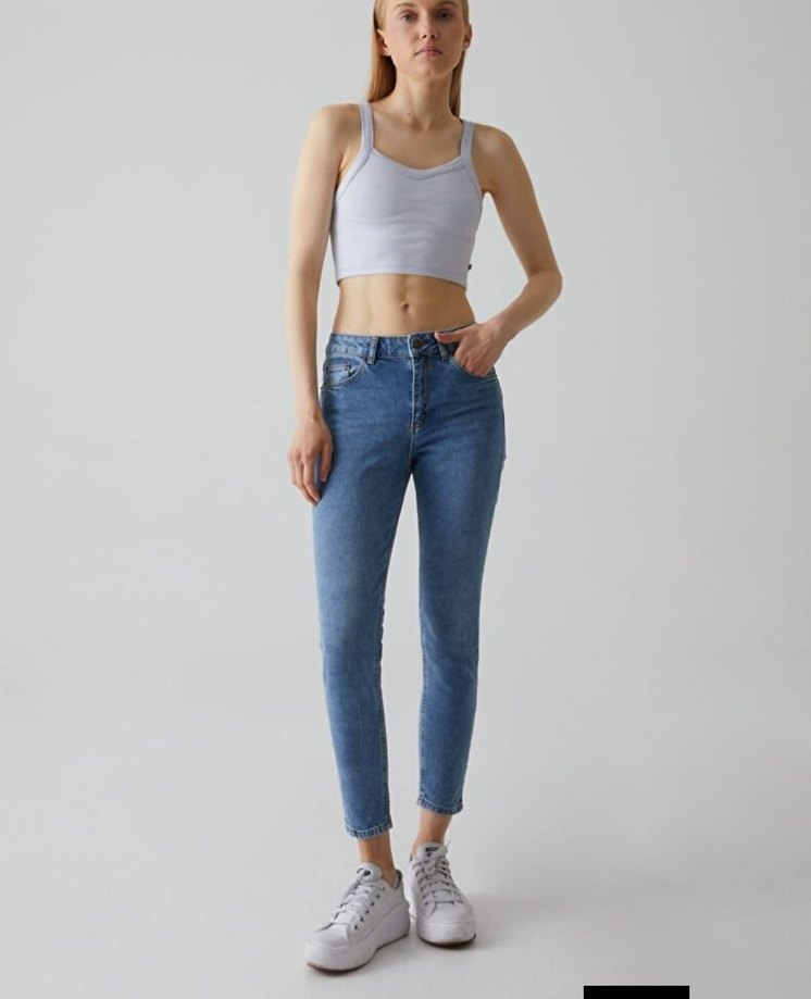 Kadın Mavi Dar Paça Kot Pantolon