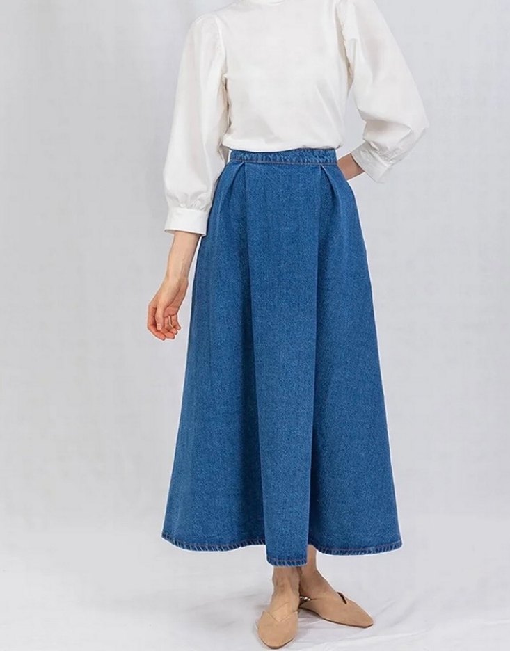Bu bol kesim midi kot etek, açık mavi renkte olup günlük kullanım için zahmetsiz şıklık sunar. Desensiz sade tasarımı, trend rahat stil için uygundur. Kusuru yok Yeni hali ile satıyorum