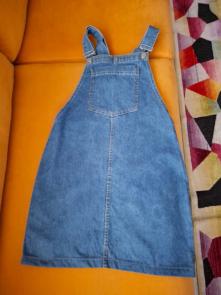 Mavi renkli, tokalı ayarlanabilir askılara ve ön cep detayına sahip, bol kesim denim kısa salopet. Günlük kullanıma uygundur.