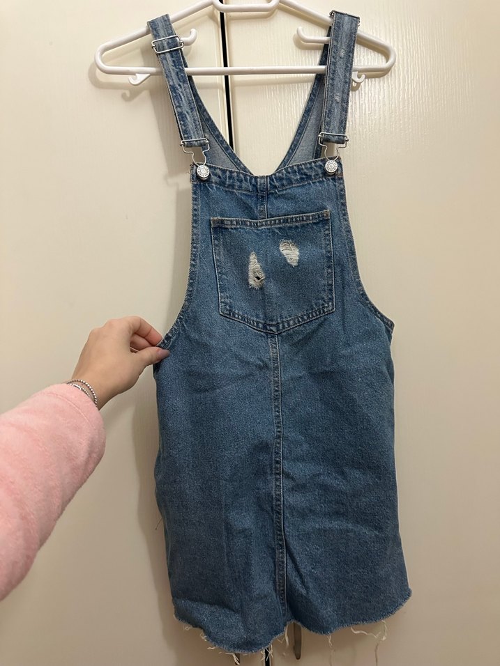 Mavi-gri renkte, askılı ve tokalı kayışlara sahip, bol kesim denim kısa tulum. Günlük kullanıma uygun rahat ve sokak tarzı şıklığı sunar.