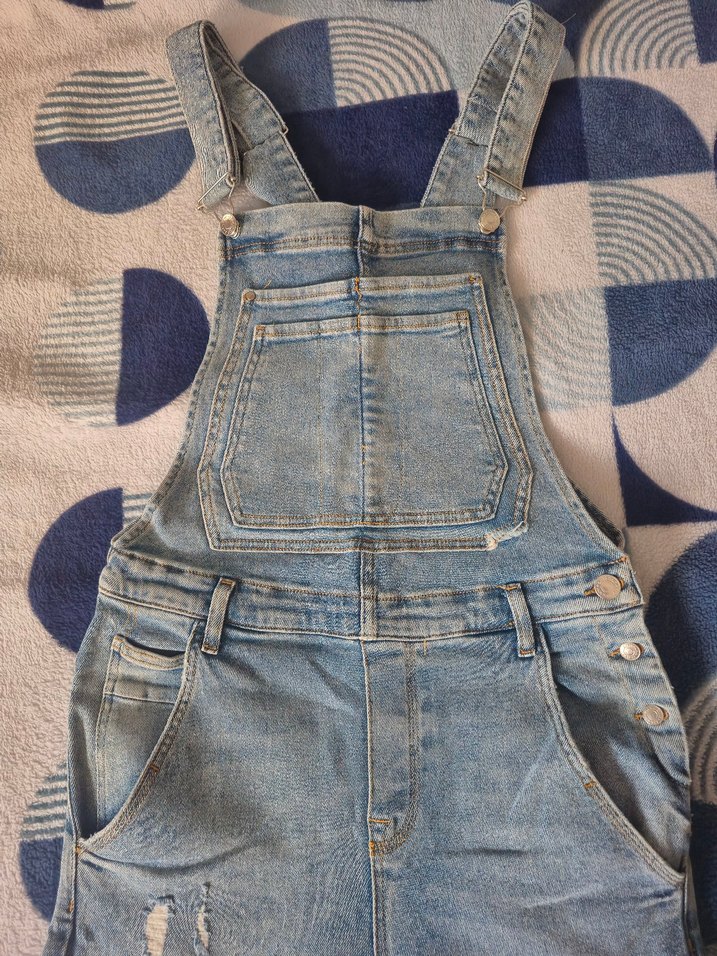 Kadınlar için mavi denimden yapılmış, askılı ve tokalı tulum. Ön cep, yan düğmeler ve salaş kesimle günlük kullanıma uygundur. Uzun ve kolsuzdur. Aldım ve hiç giymedim uzun zaman oldu bana büyük oldu çünkü.