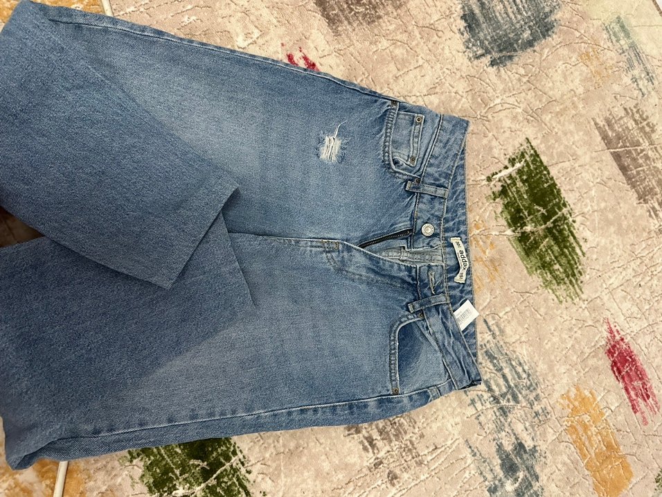 Normal boy, bol kesim mavi denim jean. Sokak stiline uygun, günlük kullanıma elverişli.