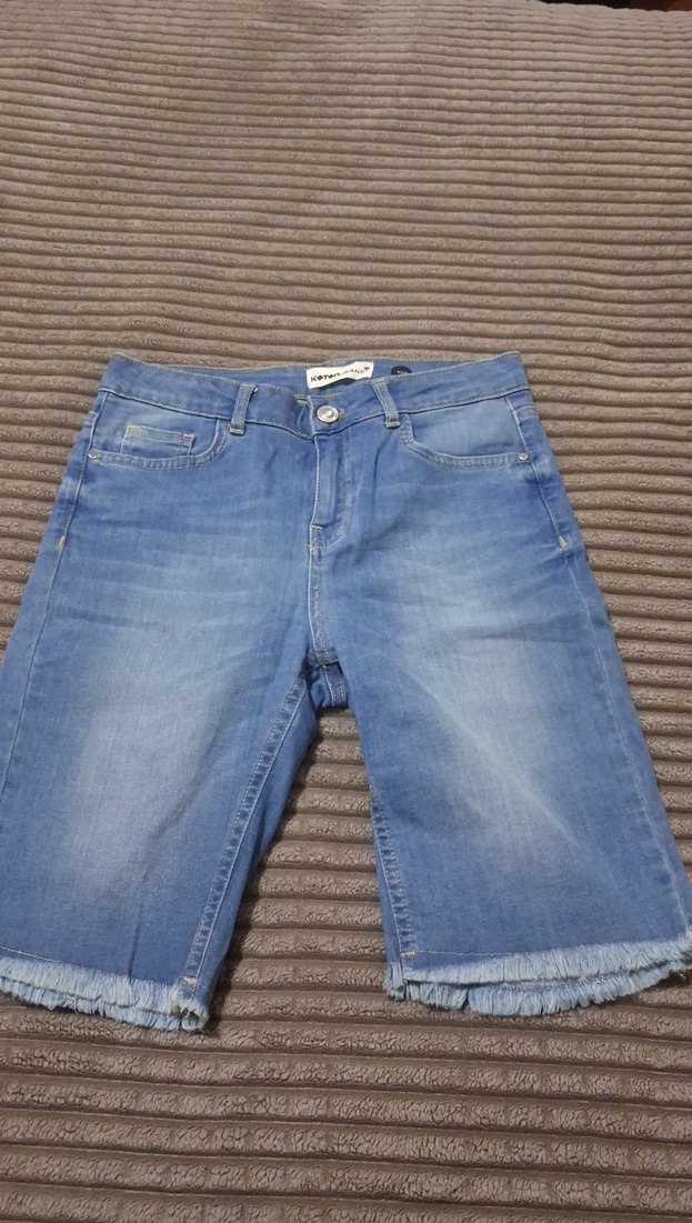 Kadınlar için düz mavi denim mini şort, regular fit ve kısa boyda, paçası kesik ve salaş şık bir görünüm sağlar. Günlük sokak stiline uygundur. çok iyi durumda,yumuşaktır