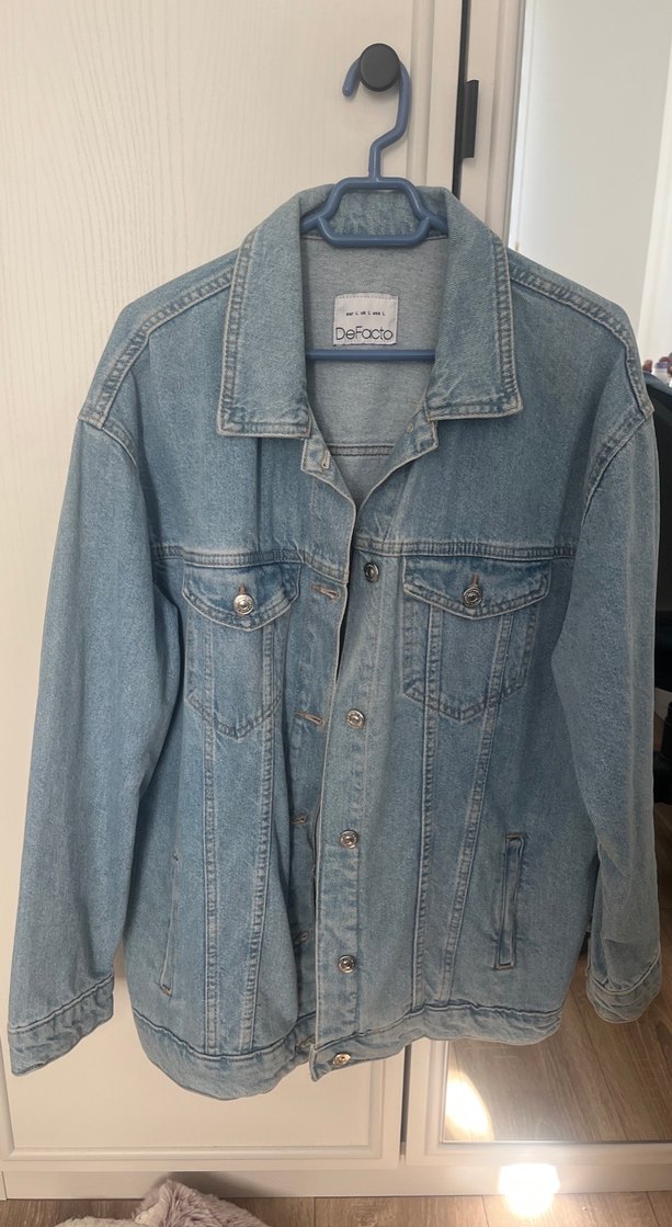 Kadın mavi denim ceket, düğmeli ve salaş kesime sahiptir. Normal boyda ve uzun kolludur. Günlük sokak stiline uygundur. Desensizdir.