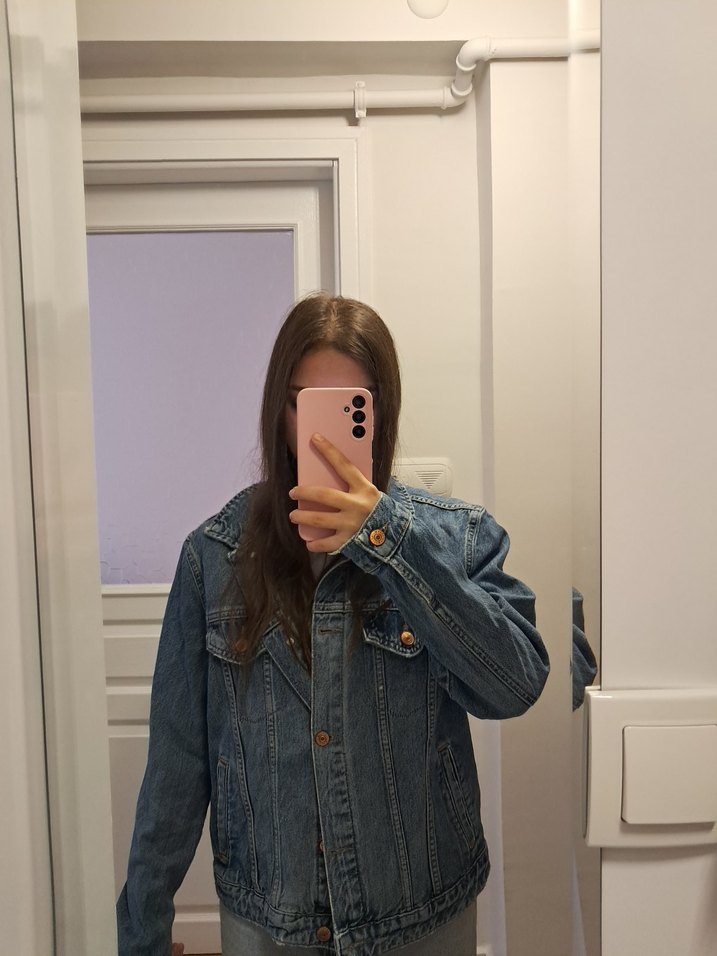 Kadın Mavi Denim Ceket, Normal Boy, Salaş