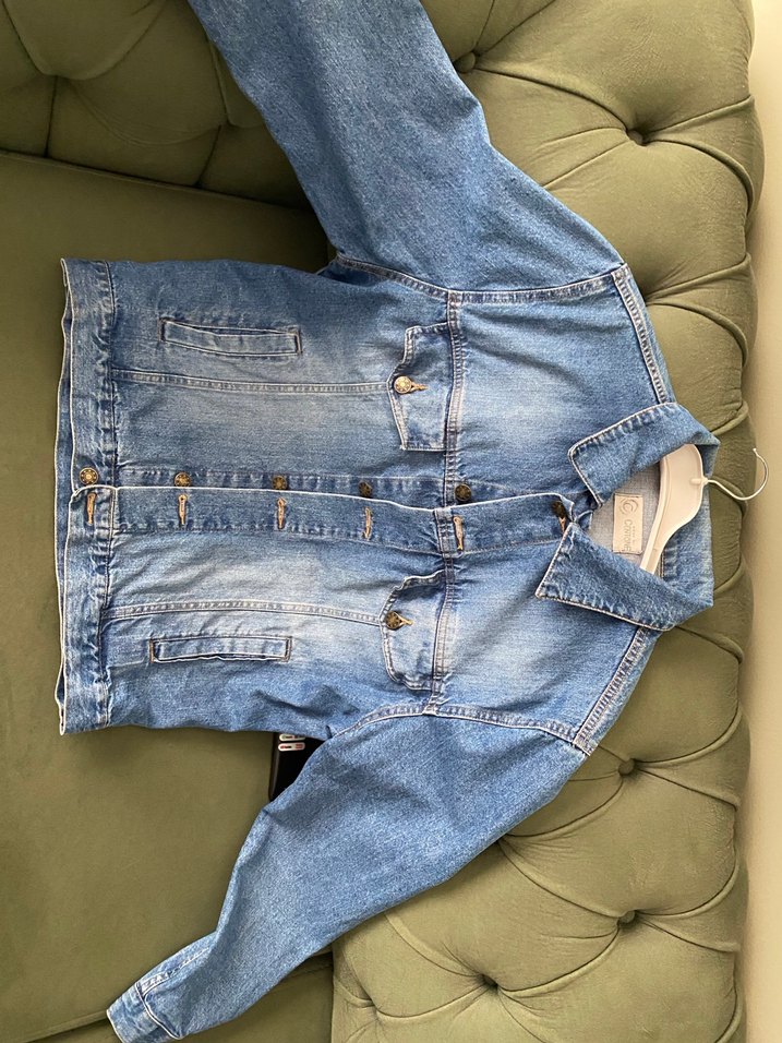Kadınlar için düğmeli, yakası kesimli, uzun kollu mavi denim ceket. Gevşek kesimi ve baskılı deseniyle günlük sokak stili için uygun. CENTONE markasıdır.