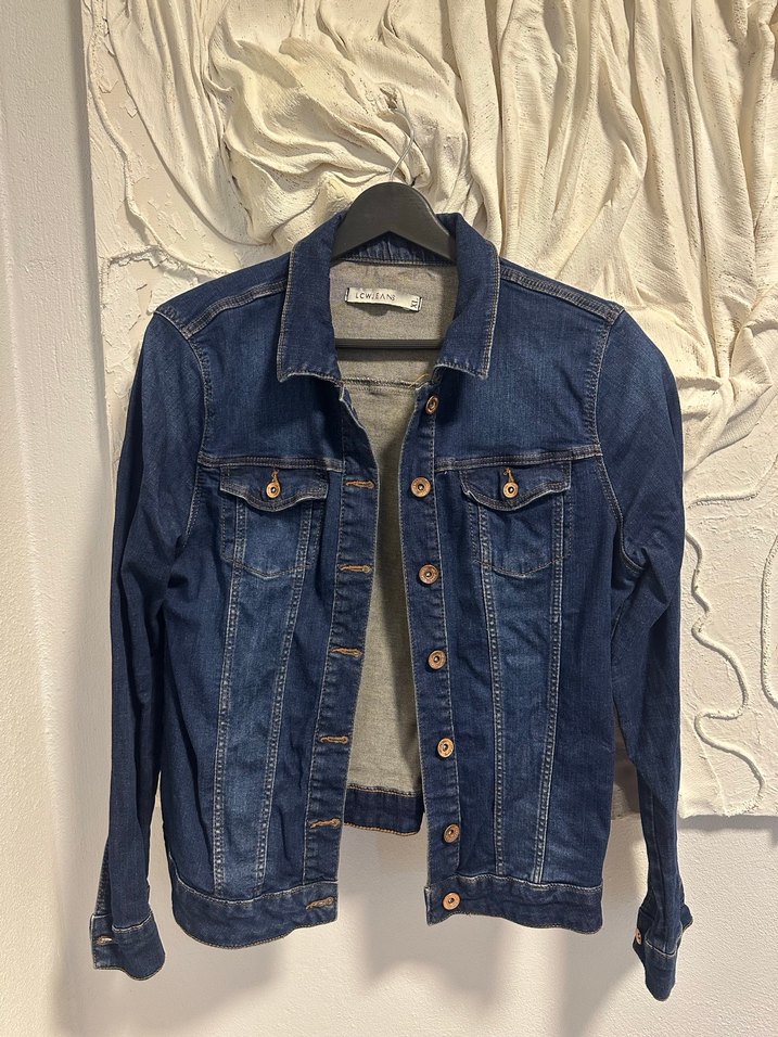 Düğmeli ve yakalı, uzun kollu kadın mavi denim ceketi. Sade ve dar kesimiyle günlük sokak stiline uygundur hiçbir deformesi yoktur kullanılmamıştır dolabımı yenilmek için satıştadır
