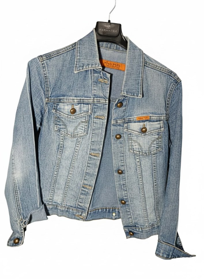 Mavi denimden üretilmiş, düğmeli, uzun kollu ve notched yakalı kadın ceketi. Günlük kullanıma uygun, rahat kesim ve sokak stili.