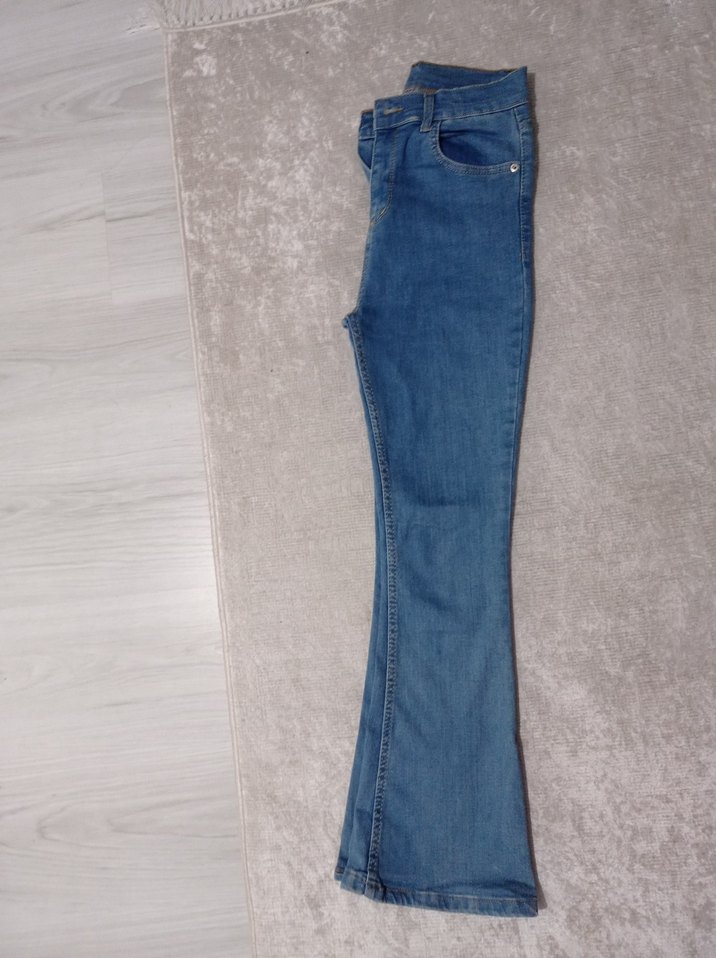 Kadın Mavi Denim ispanyol paça pantolon