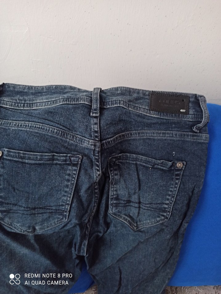 Kemer detaylı, dar kesim mavi denim pantolon. Normal midi boyda, sokak stiline uygun, günlük kullanıma uygundur.