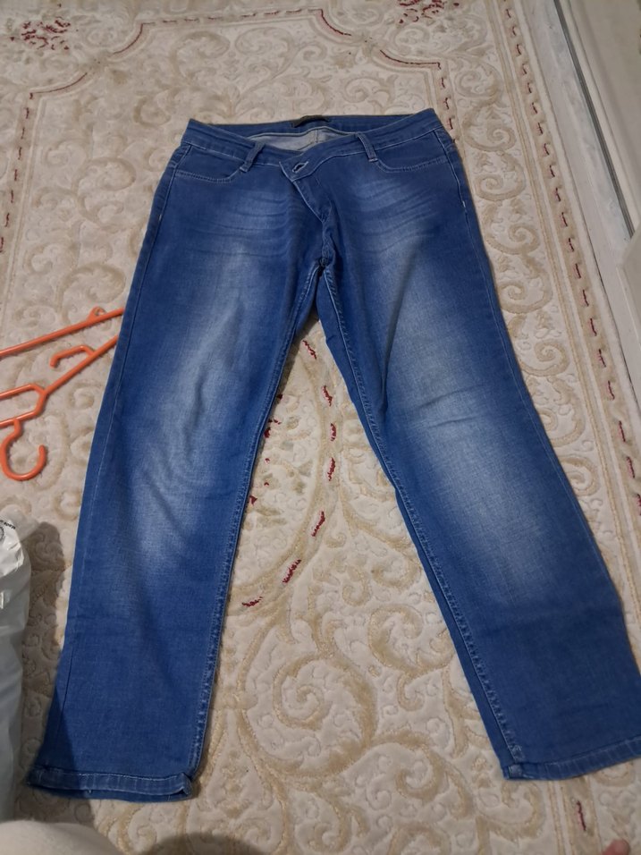 Kadınlar için mavi denim, kemerli ve rahat kesim jean. Normal boyda, desen içermeyen günlük sokak stili için uygundur.