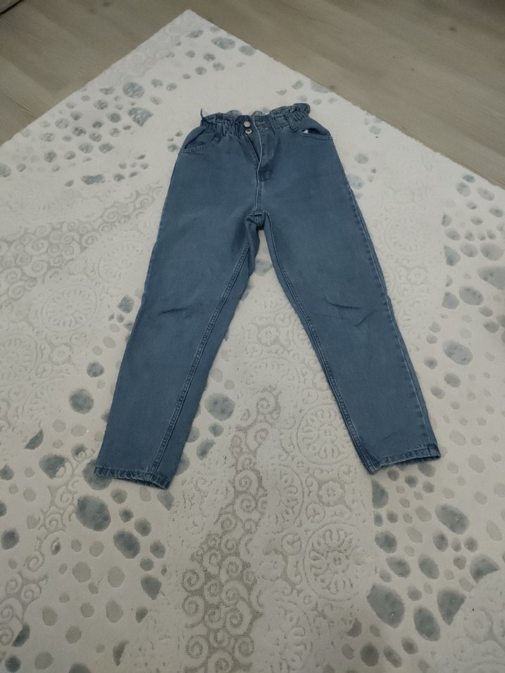 Kadın Mavi Denim Kemerli Salaş Jean
