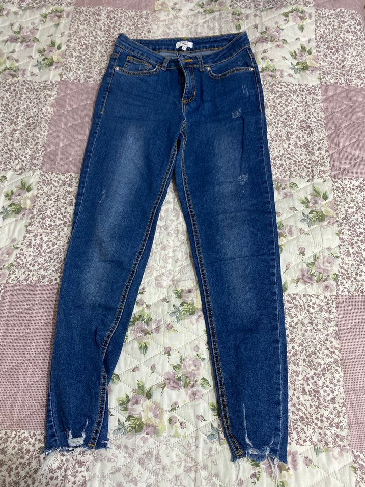 Zarif batik desenli, mavi denim kot pantolon, günlük sokak stili için uygundur.