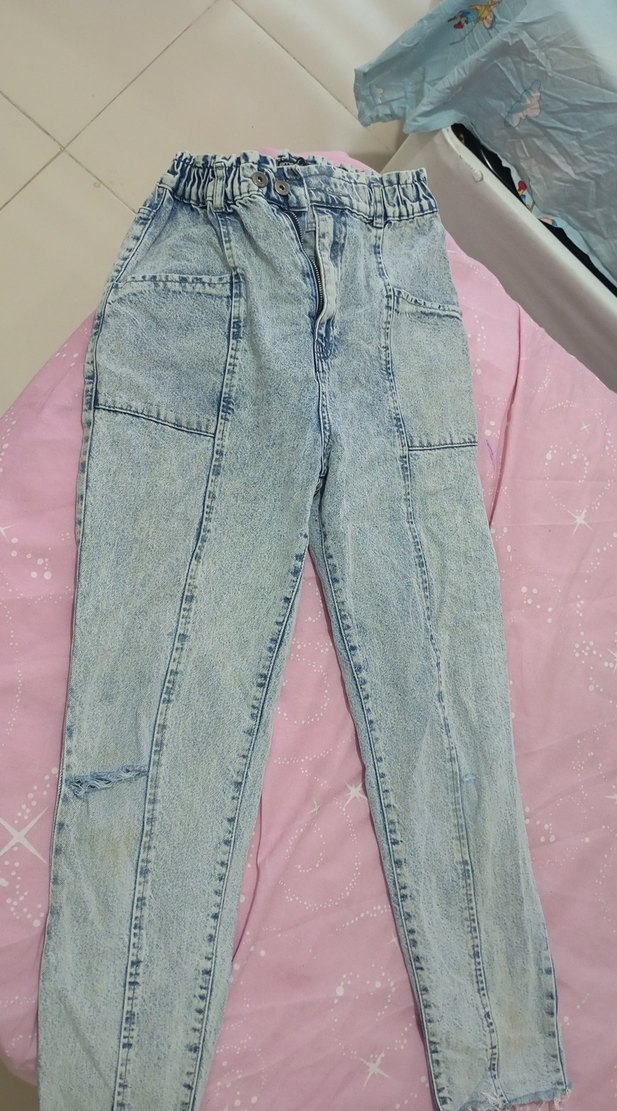 Kadınlar için mavi denimden üretilmiş, bol kesim ve midi boyda, bel kısmı büzgülü jean. Günlük sokak tarzı için uygun, zahmetsiz şıklık sunar.