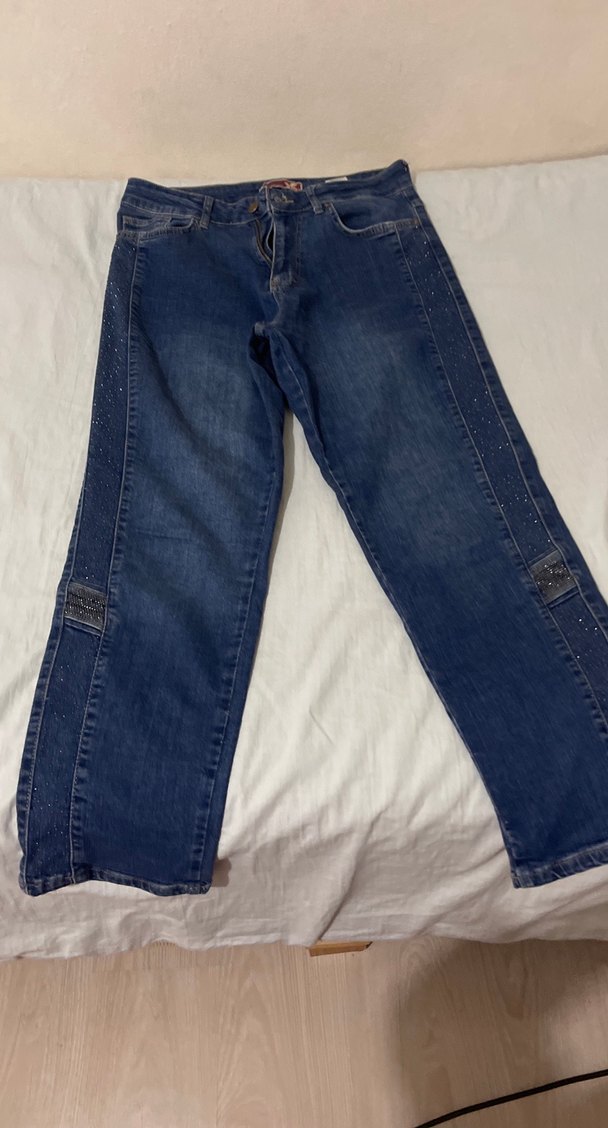 Parlak mavi renkte, normal midi boy ve regular fit kesime sahip kadın kot pantolon. Tokalı detay içerir, günlük rahat kullanım için uygundur.