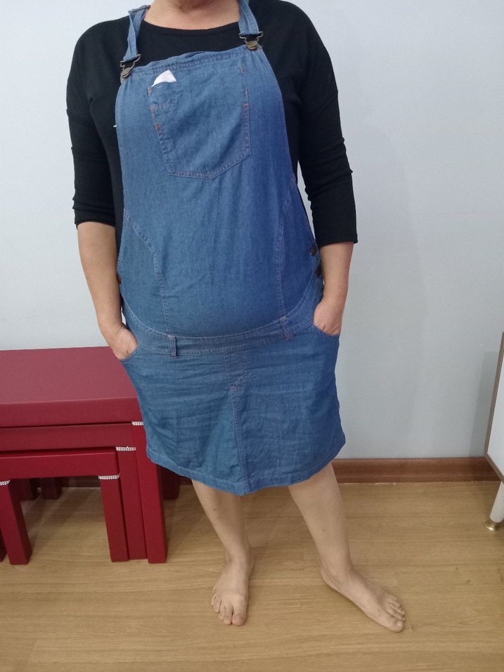 Kadın Mavi Denim Midi hamile Salopet