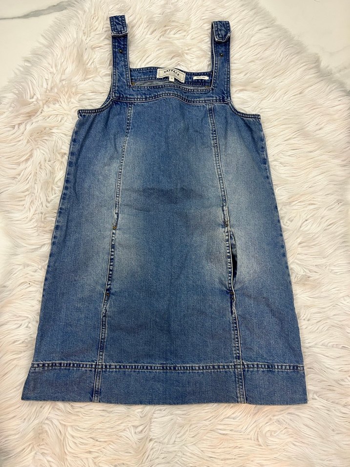 Mavi denim midi uzunlukta, askısız ve bol kesim kadın salopet. Günlük kullanıma uygun, salaş ve şık bir sokak stili ürünü. Beden yazmıyor. Ölçüler görselde eklidir