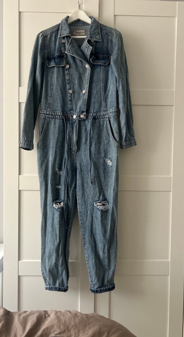 Kadınlar için mavi denim tulum, bol kesim, yakalı ve tokalı detaylara sahiptir. Rahat sokak stili, midi boy ve askılı kolludur. Günlük kullanıma uygundur. Hediye geldi 1 kez denemek için yıkadım giydim ve bedeni olmadı. Sorunsuzdur .
