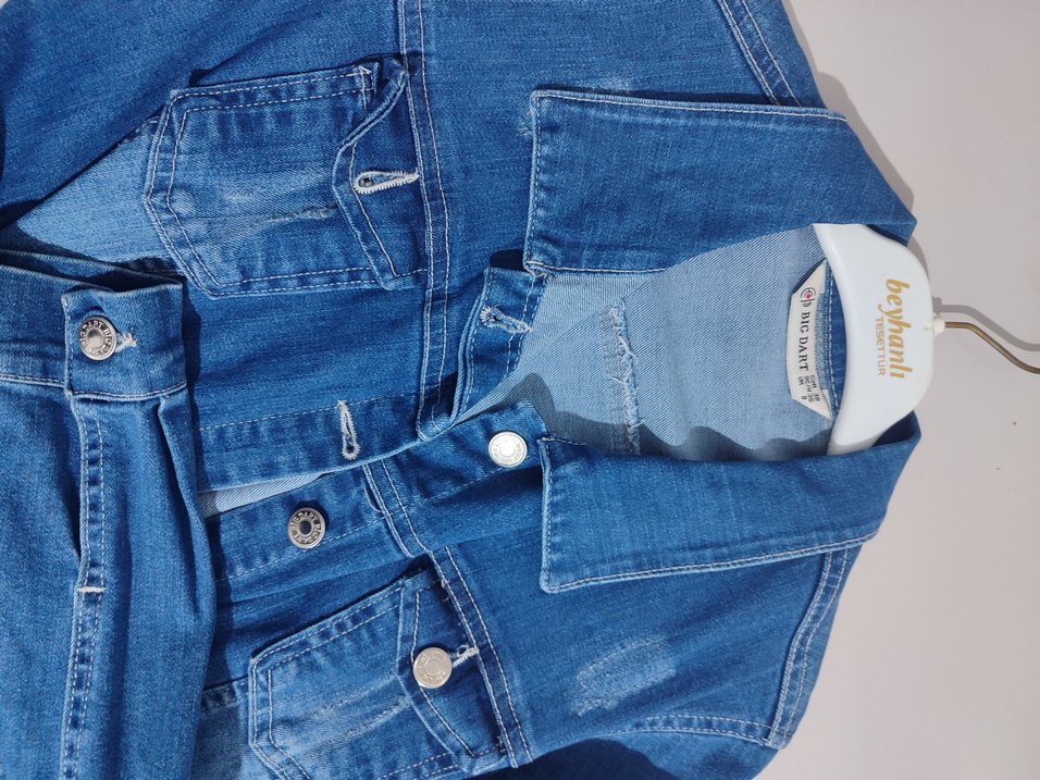 Dar kesim kadın mavi denim ceket, kısa boy ve düğmeli günlük sokak stiline uygun.