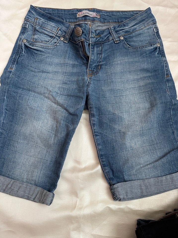 Kadın mavi denim mini şort, rahat ve bol kesimdir. Günlük kullanım için uygun, desensiz ve şehir stiliyle uyumludur.