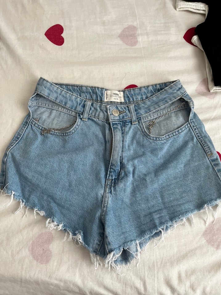 Kadınlar için bel kemerli, gevşek kesim ve pastel mavi batik desenli kısa denim mini şort. Sokak stiline uygun, yırtık detaylı etek ucu ile rahat.