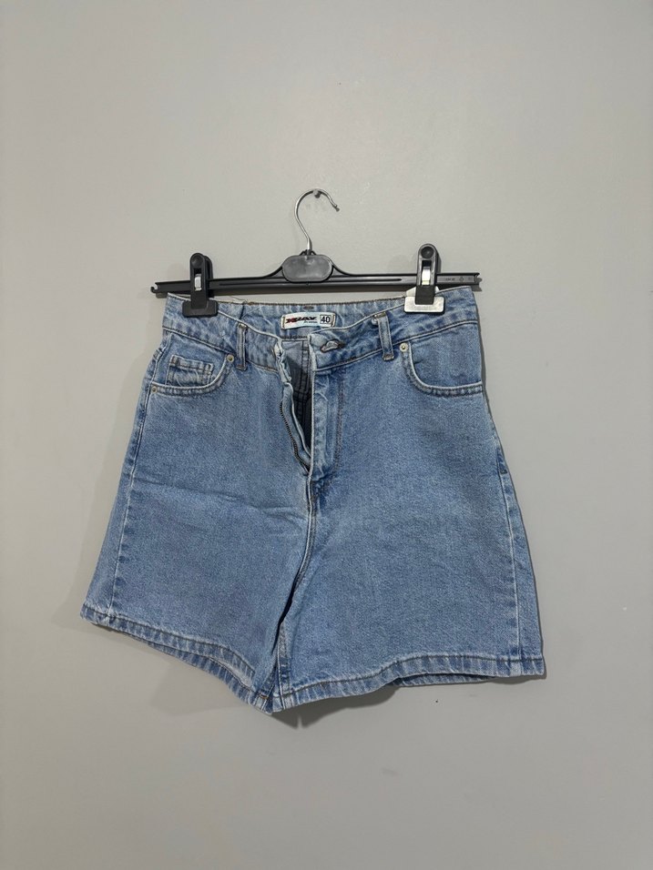 Mavi denim mini şort, rahat bol kesimiyle günlük şıklık sağlar. Minimalist ve desensiz tasarımıyla her gün kullanılabilir. Pens attırdım 38 bedene olur
