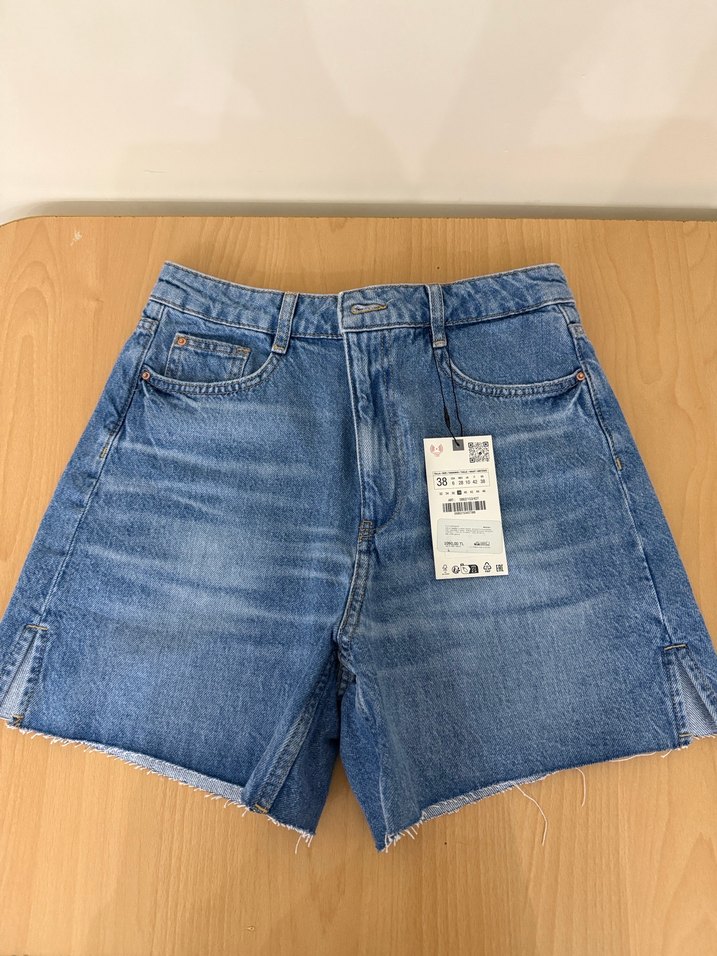 Mavi renkli, bol kesim kadın denim mini şort. Rahat sokak stili ve kısa paça, günlük kullanım için uygun.