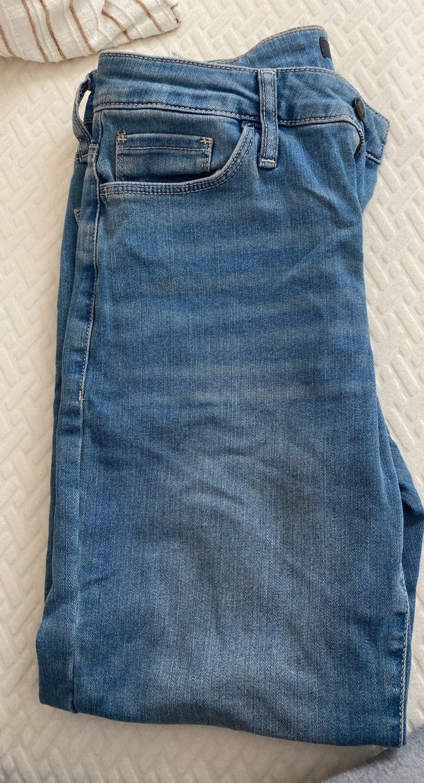 Kadınlar için mavi denimden yapılmış, fermuarlı detaylı, normal boy ve dar kesim jean. Günlük kullanıma uygundur.