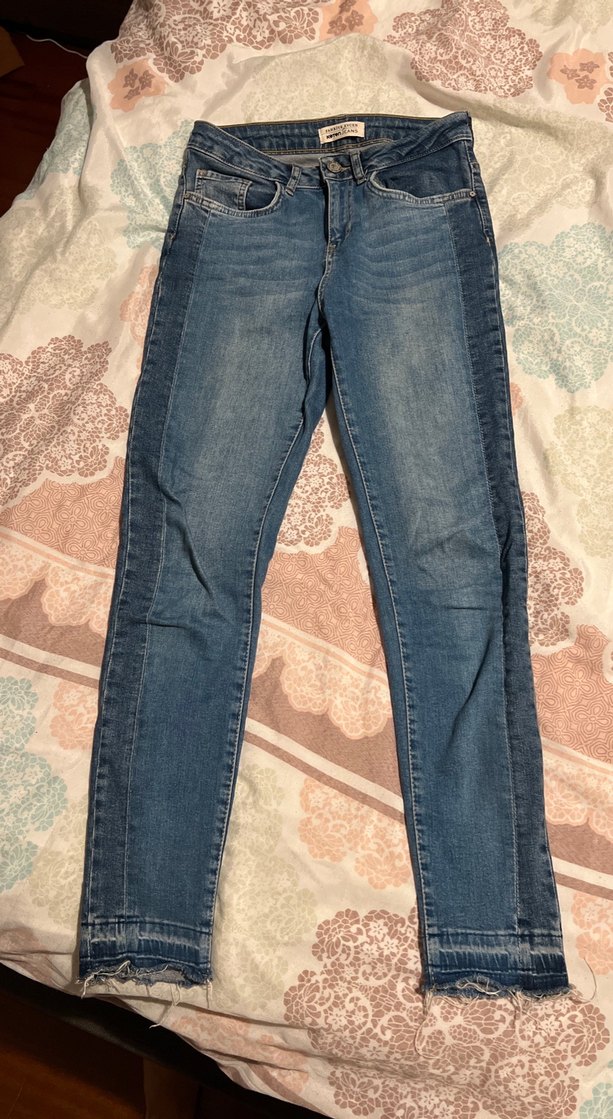 Kadınlar için regular fit, mavi denim kumaştan yapılmış, günlük kullanıma uygun normal boyda jean. Gri tonlarda bağlama deseni ve tokalı detaylar ile sokak stili görünümü sunar.