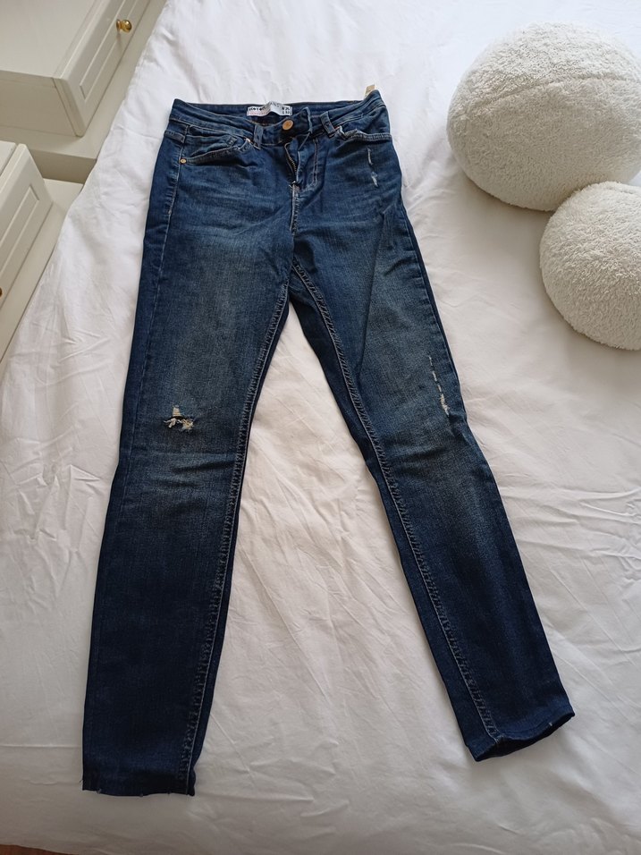 Mavi denim kadın kot pantolon, normal boy ve regular fit. Tokalı bel detayı ve desensiz sade tasarımıyla günlük kullanıma uygun. Trendy casual tarzda.