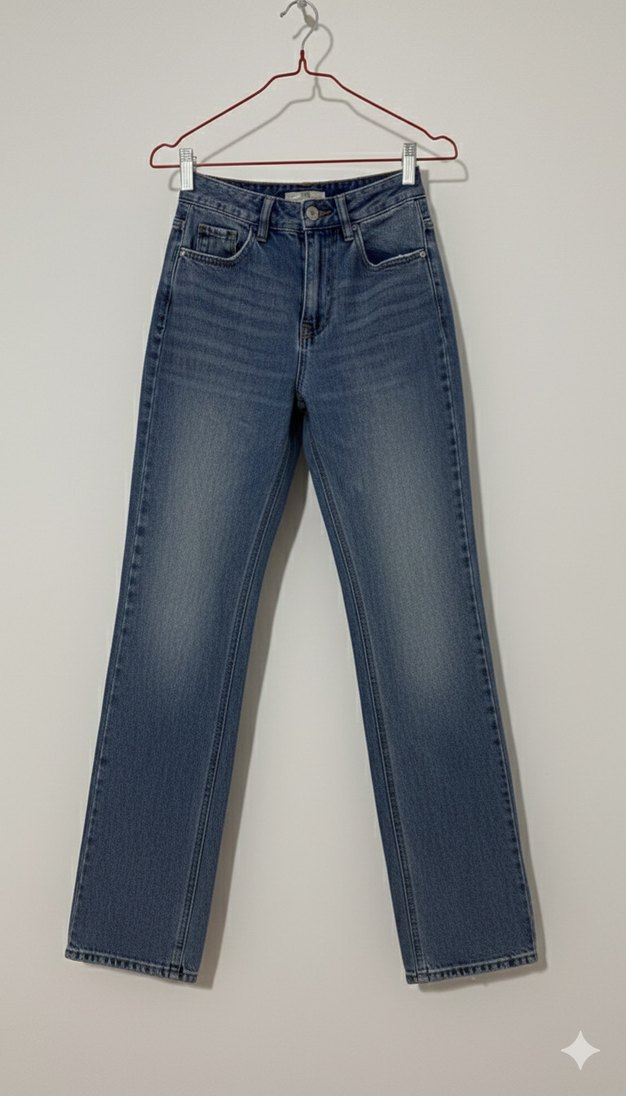 Kadın mavi denim jean, normal paça ve rahat kesime sahip. Günlük kullanım için şık ve rahat bir seçenek sunar. !!! Stradivarius az kullanıldı vücuda pturuşu çok güzel çok güzel gösteriyor popoyı defosu vs yok 34 beden !!!