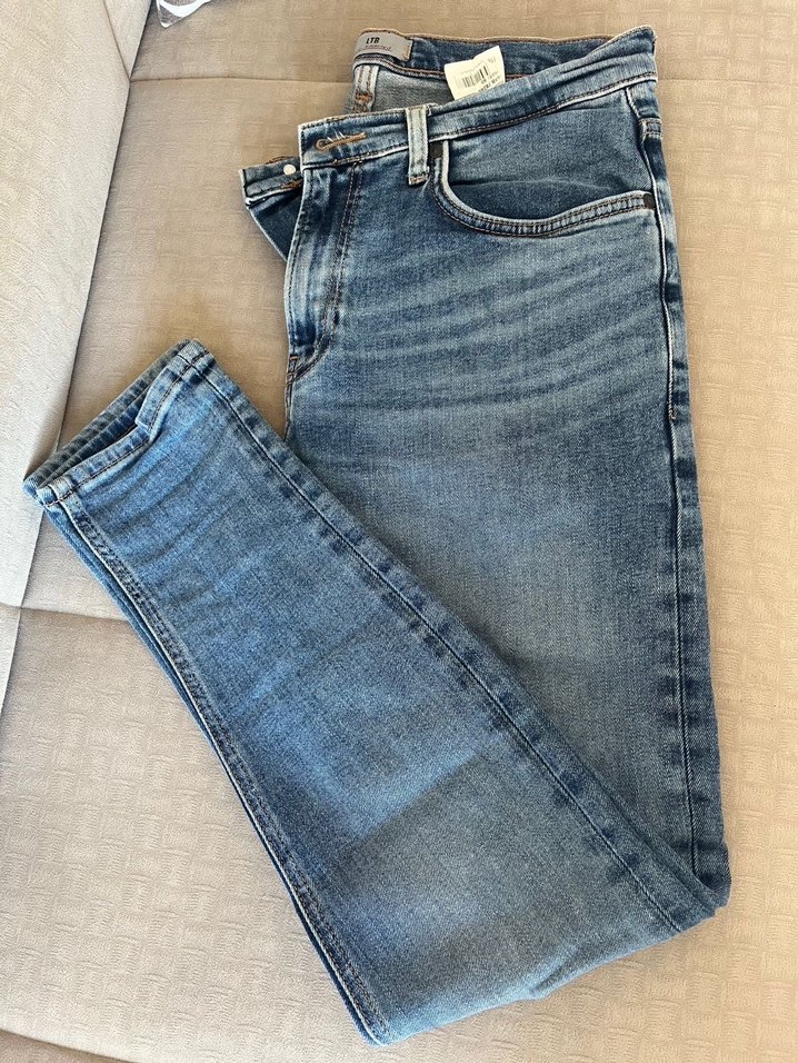mavi, düz desenli denim kumaştan, , orta boy pantolon. Günlük ve rahat kullanıma uygun. 31/28 bezen ltb markalı sorunsuz