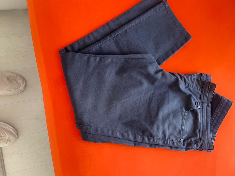 Kadınlar için mavi denim pantolon, regular fit ve fermuarlı detaylı. Günlük kullanım için sade ve rahat tarzda.