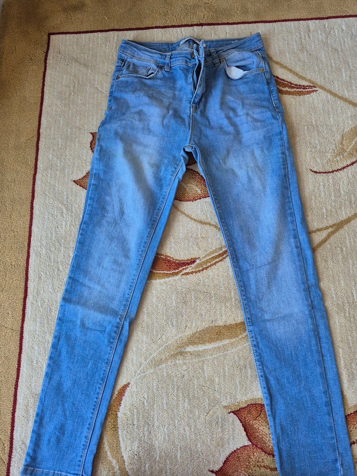 Kadınlar için mavi denimden yapılmış, regular fit kesime sahip, hafif batik desenli ve tokalı detaylı jean. Günlük sokak stili için uygun.