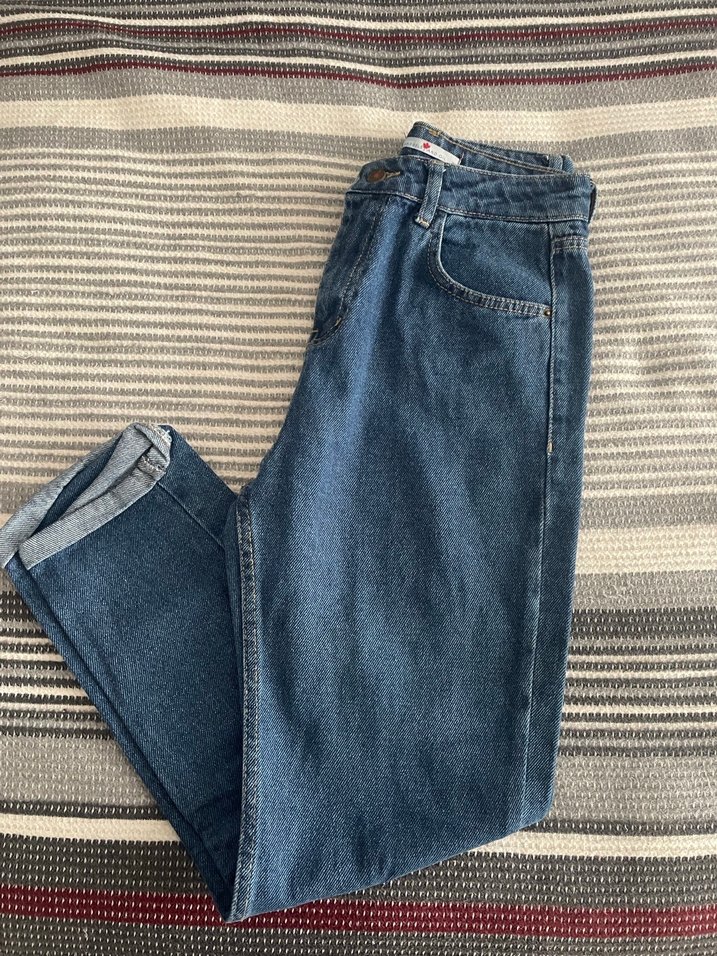 Kadınlar için mavi denimden yapılmış, regular fit kot pantolon. Desensiz sade tasarımı günlük sokak modasına uygun, zahmetsiz şıklık sunar.