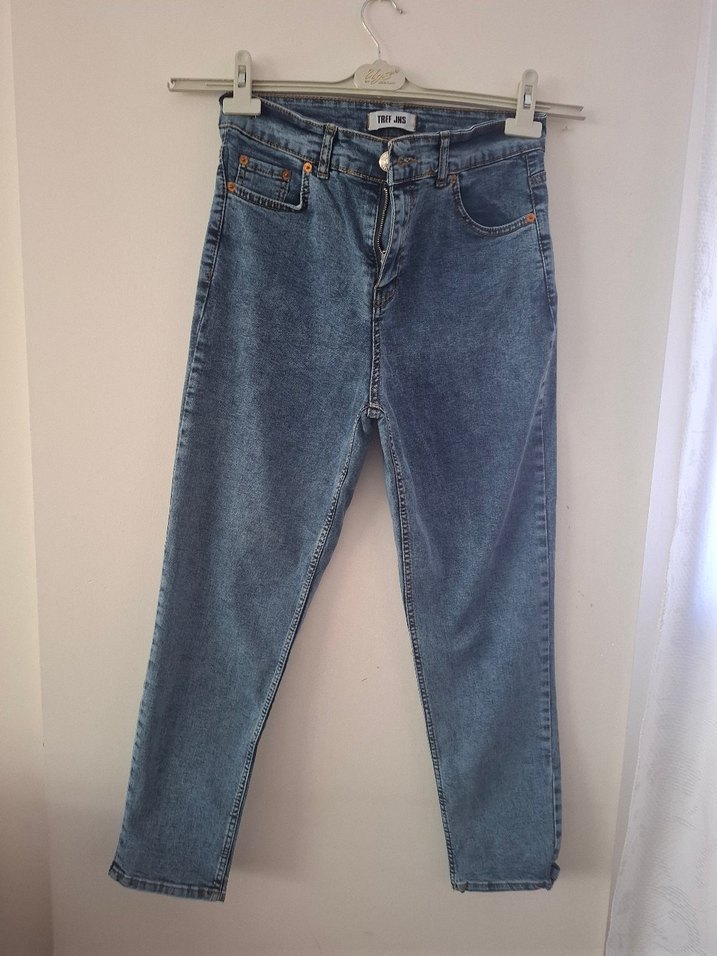 Mavi denim, regular fit ve midi boy kadın jean. Rahat ve şık görünüm sunar, günlük ve sokak stiline uygundur.